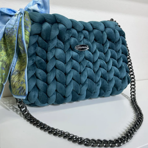 Χειροποίητες Velvet Marshmallow Bags πλεγμένες με βαμβακερό νήμα Velvet Marshmallow, με βελούδινη υφή. Με ή χωρίς αλυσίδα, σε σχέδιο φακέλου, ώμου ή χειρός. Προσφέρουν μοντέρνο και ευχάριστο στυλ.