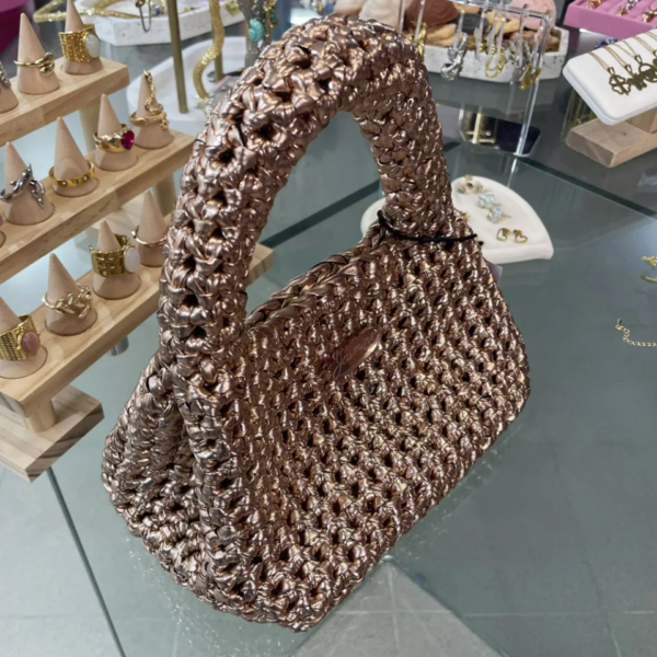 Δώσε ζωντάνια και ένταση σε κάθε σου εμφάνιση με τη Mini Metallic Handbag σε μεταλλικό σαμπανιζέ χρυσό χρώμα! Χειροποίητη με αγάπη και προσοχή στη λεπτομέρεια, αυτή η μικρών διαστάσεων τσάντα χειρός αποτελεί statement κομμάτι.