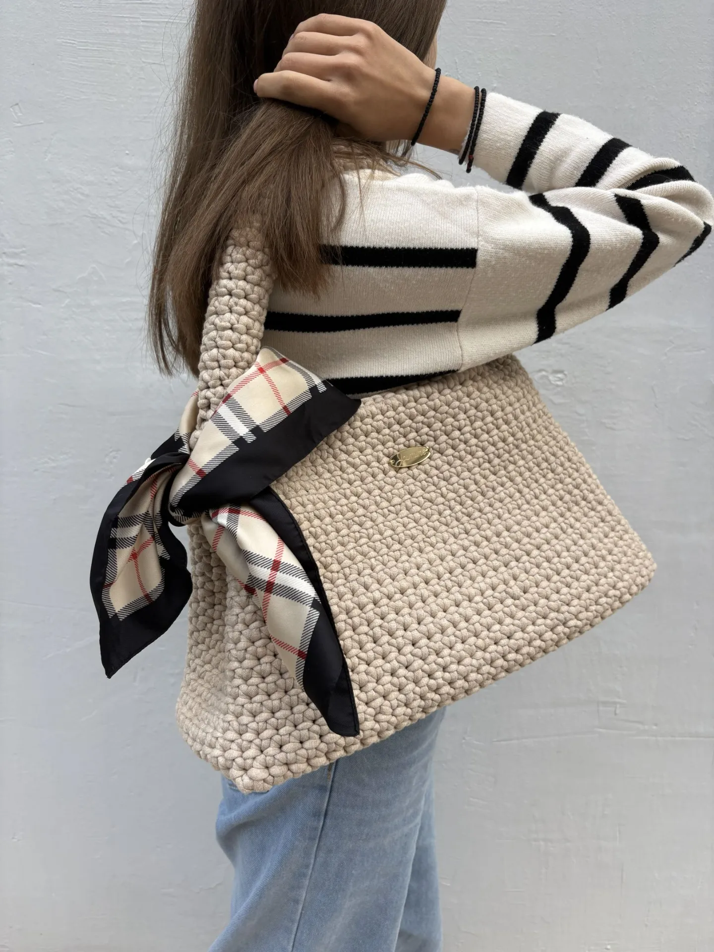 Το πλεκτό της σχέδιο και το διακοσμητικό φουλάρι στο λουρί δίνουν έναν διαχρονικό και casual χαρακτήρα, που ταιριάζει με πολλά στυλ.