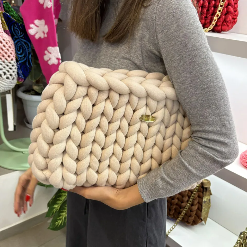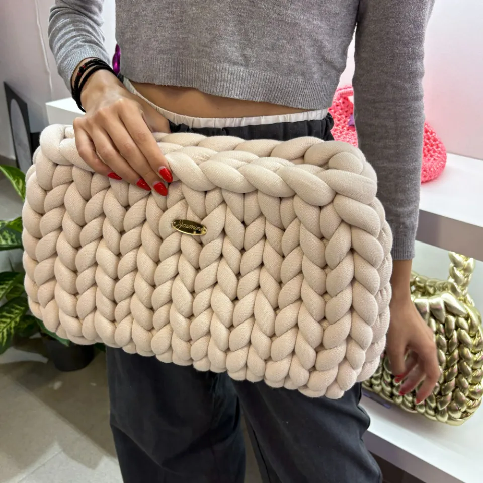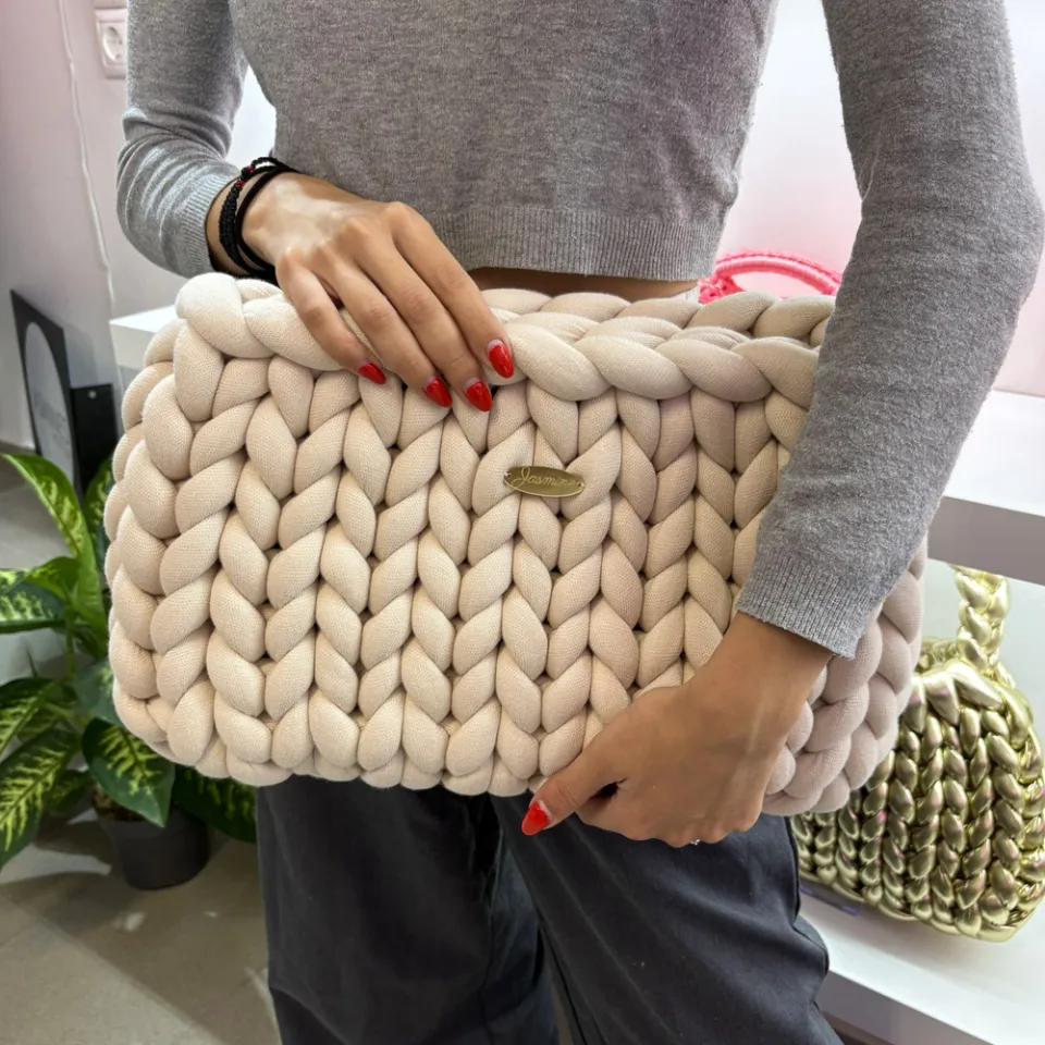 💚 Πλεκτός Φάκελος Χειρός σε Απαλό Μπεζ