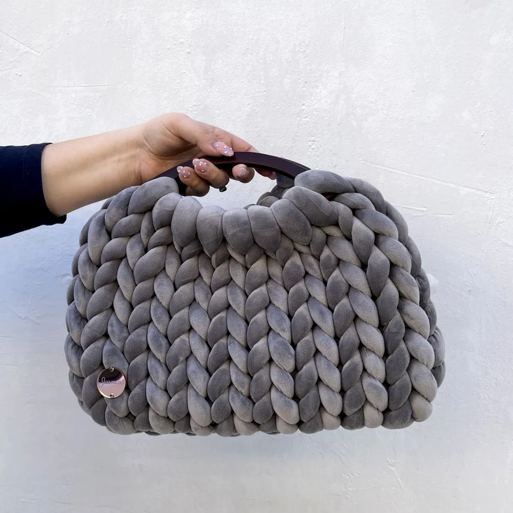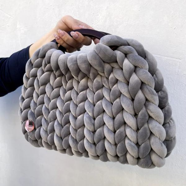 🤍 Marshmallow Velvet Bag – Grey