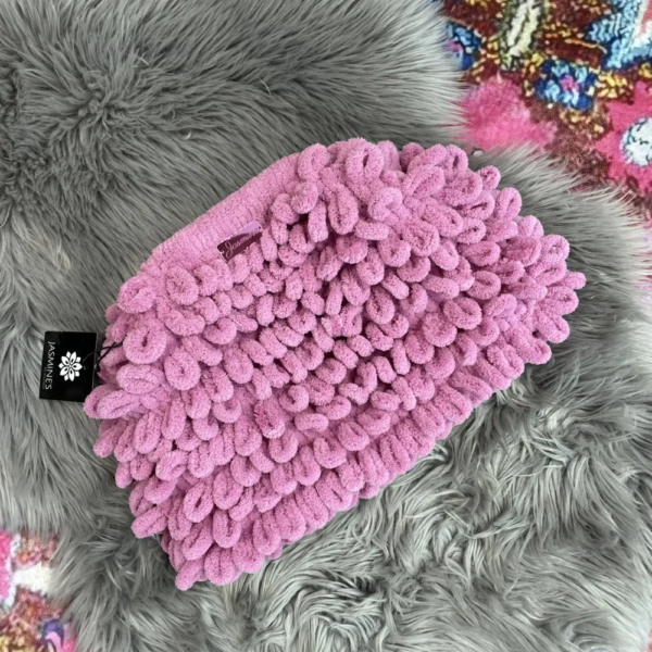 Χειροποίητη puffy clutch σε απόχρωση Pink Sugar Cloud – ένα απαλό ροζ που θυμίζει μαλλί της γριάς και καλοκαιρινά γλυκά. Η τρισδιάστατη υφή από αφράτο chenille νήμα δημιουργεί ένα πλούσιο, «σύννεφο» αποτέλεσμα που ξεχωρίζει σε κάθε εμφάνιση.