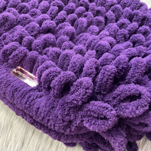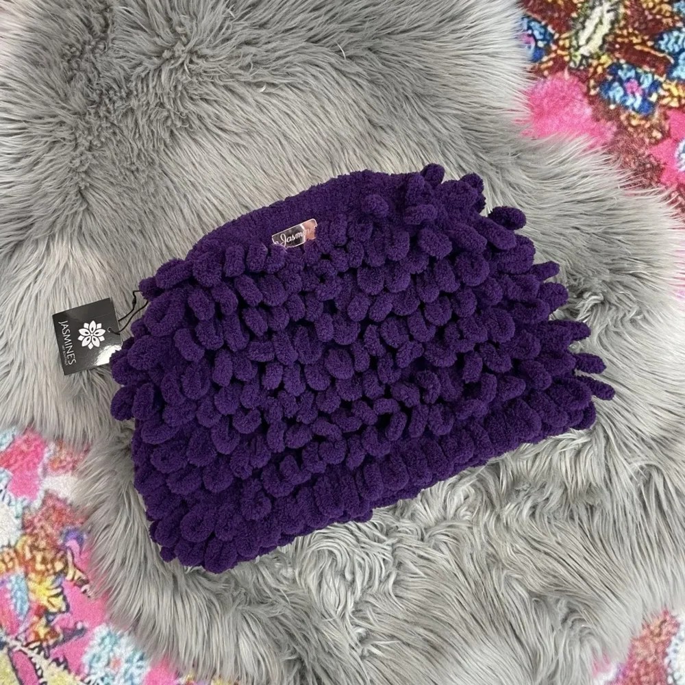 Η χειροποίητη πλέξη δημιουργεί τον χαρακτηριστικό τρισδιάστατο όγκο της σειράς Puffy, με εξαιρετικά απαλή υφή που θέλεις να αγγίζεις συνεχώς. Στο εσωτερικό, η πουά φόδρα σε μωβ βάση προσθέτει μια playful αλλά κομψή αντίθεση, αποκαλύπτοντας την προσοχή στη λεπτομέρεια κάθε φορά που ανοίγει.