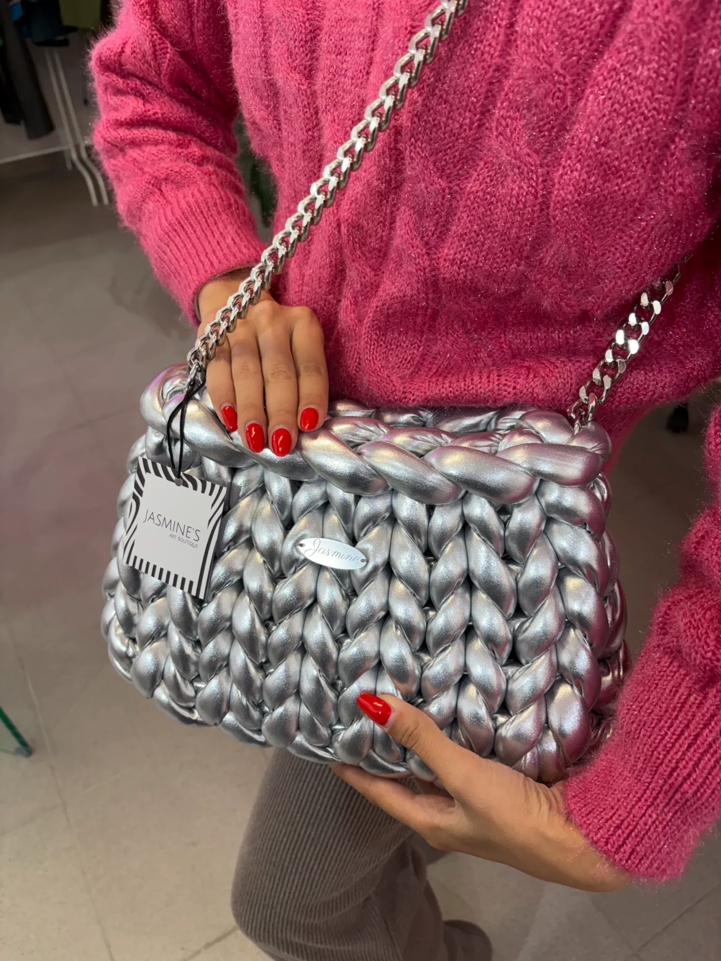 Χειροποίητη με προσοχή στη λεπτομέρεια, από μαλακό νήμα marshmallow που θυμίζει την υφή του δέρματος, προσφέρει μια κομψή και ταυτόχρονα μοντέρνα αισθητική. Το σχήμα φακέλου και η ασημί αλυσίδα ώμου προσθέτουν ένα διαχρονικά σικ ύφος, ιδανικό για all-day εμφανίσεις ή ιδιαίτερες περιστάσεις.